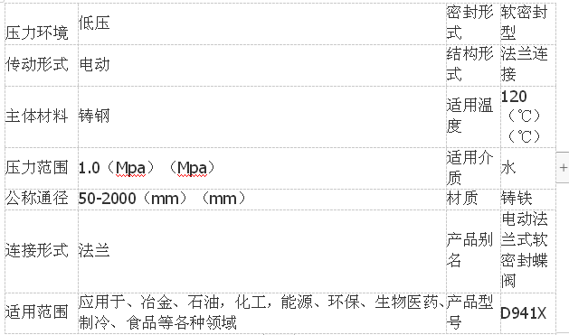 三、普通开关型软密封法兰式蝶阀性能规范: