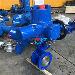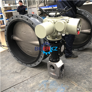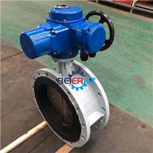 D943H金属硬密封电动蝶阀为偏心金属密封结构,密封形式为金属对金属密封,可调换金属密封圈对金属密封,不锈钢板与石墨复合板密封圈对金属密封。D943H金属硬密封电动蝶阀的蝶板安装于管道的直径方向。在蝶阀阀体圆柱形通道内,圆盘形蝶板绕着轴线旋转,旋转角度为0°~90°之间,旋转到90°时,阀门则呈全开状态。