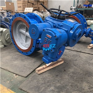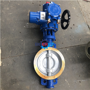 D943H三偏心电动法兰调节蝶阀为偏心金属密封结构,密封形式为金属对金属密封,可调换金属密封圈对金属密封,不锈钢板与石墨复合板密封圈对金属密封。硬密封蝶阀的蝶板安装于管道的直径方向。